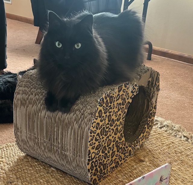 Shelby, my beloved 10-year-old long-haired black cat, passed away peacefully. He leaves behind his sister, Lola, who will miss him dearly. Shelby was known for his love of treats and his playful spirit. He found joy in playing with and fetching balls and toy mice, sitting in boxes, playing hide and seek, and lounging in his cat tree. Shelby’s favorite moments were spent snuggling on the couch, bringing warmth and comfort to his sister and me.