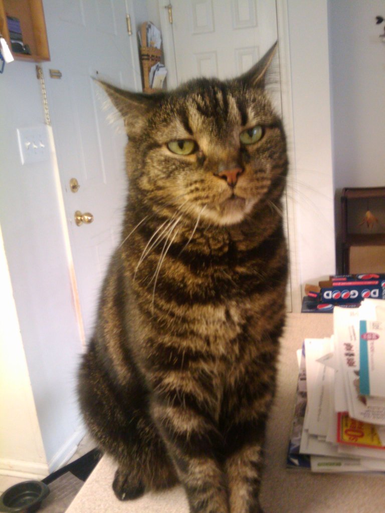 Xena was my aunt and cousin’s cat. After my aunt passed away in March of 2010, no one was willing to take in Xena, so Chrystal and I did with the intention of finding her a new home. Xena was not socialized with animals and we had a dog and a cat already.